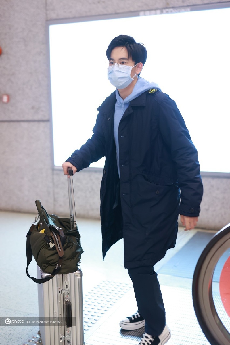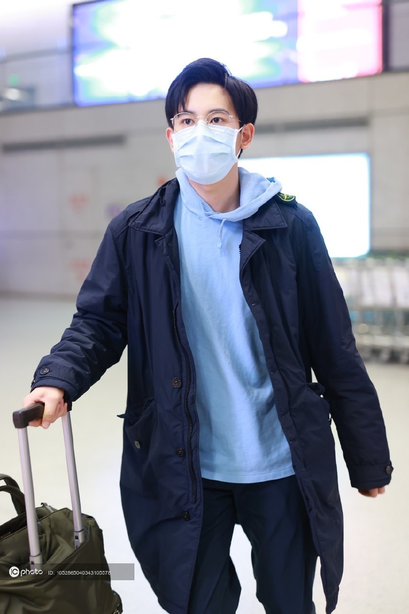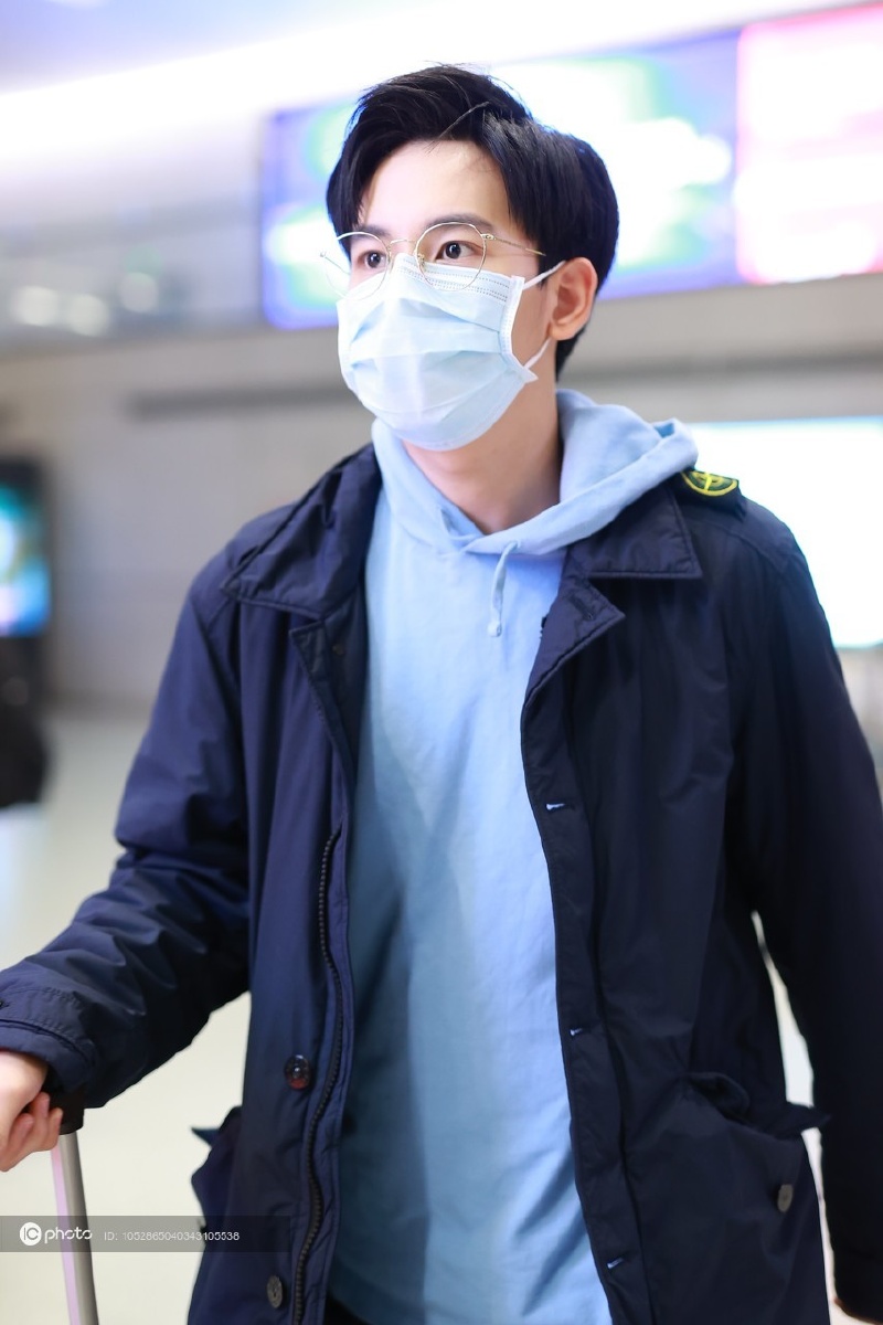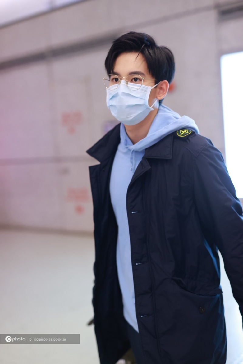 街拍:胡先煦藏青色外套+蓝色卫衣阳光少年